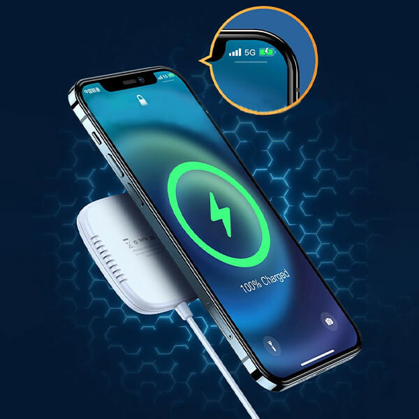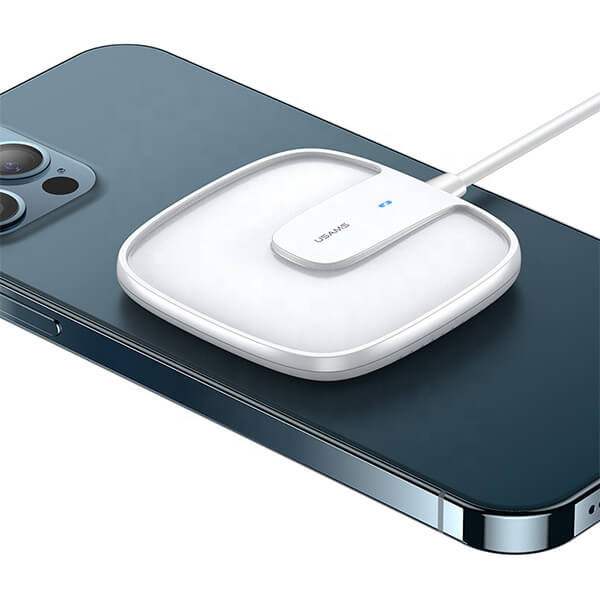 Az USAMS US-CD159 15W extra vékony mágneses gyors vezeték nélküli töltő egy egyszerű kialakítású termék. Gyorstöltési technológiával és intelligens kezelőrendszerrel felszerelt, amely megvédi a készüléket a túlfeszültségtől, a túltöltéstől vagy a túlmelegedéstől. A töltő mágnessel rendelkezik, amelynek köszönhetően az iPhone 12 széria tökéletesen elhelyezhető a töltőponton. Megjegyzés: Ahhoz, hogy más készülékek is mágneses töltést kapjanak, mágneses lemez használata szükséges (készítse el saját maga).
