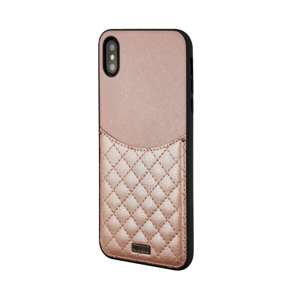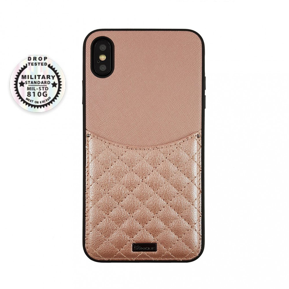 Uunique iPhone XS Max Quilted Shimmer Pocket Hard Shell hátlap, tok kártyatartóval, bársonyarany