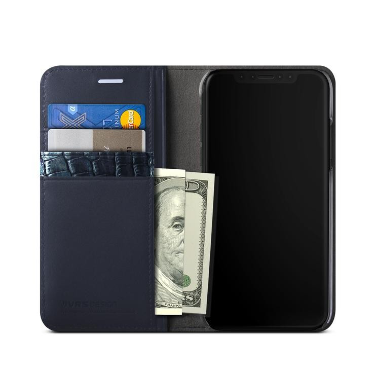 VRS Design (VERUS) iPhone Xs Max Genuine Leather Diary oldalra nyíló tok, sötétkék