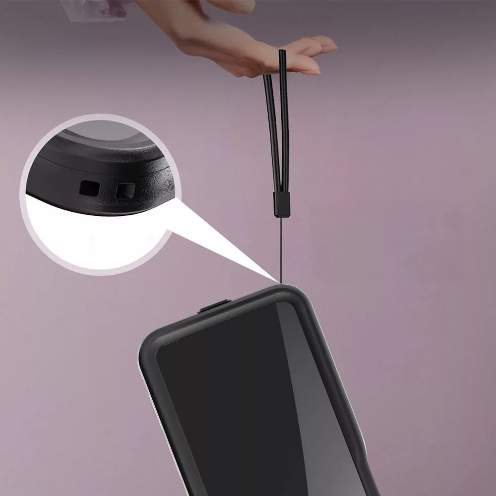 A beépített tömítéssel ellátott egyedi pattintós zárószerkezet garantálja a szoros záródást, kiküszöbölve a víz bejutásának kockázatát a tokba. Ez megbízható megoldást jelent mindazok számára, akik a telefont zord körülmények között szeretnék használni.