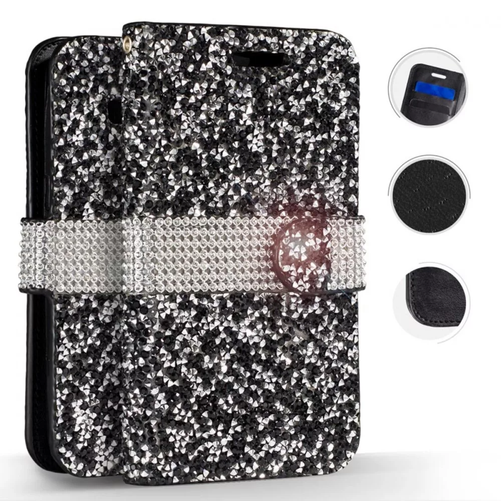 Zizo Full Diamond iPhone Xs Max oldalra nyíló tok, kártyatartóval, fekete