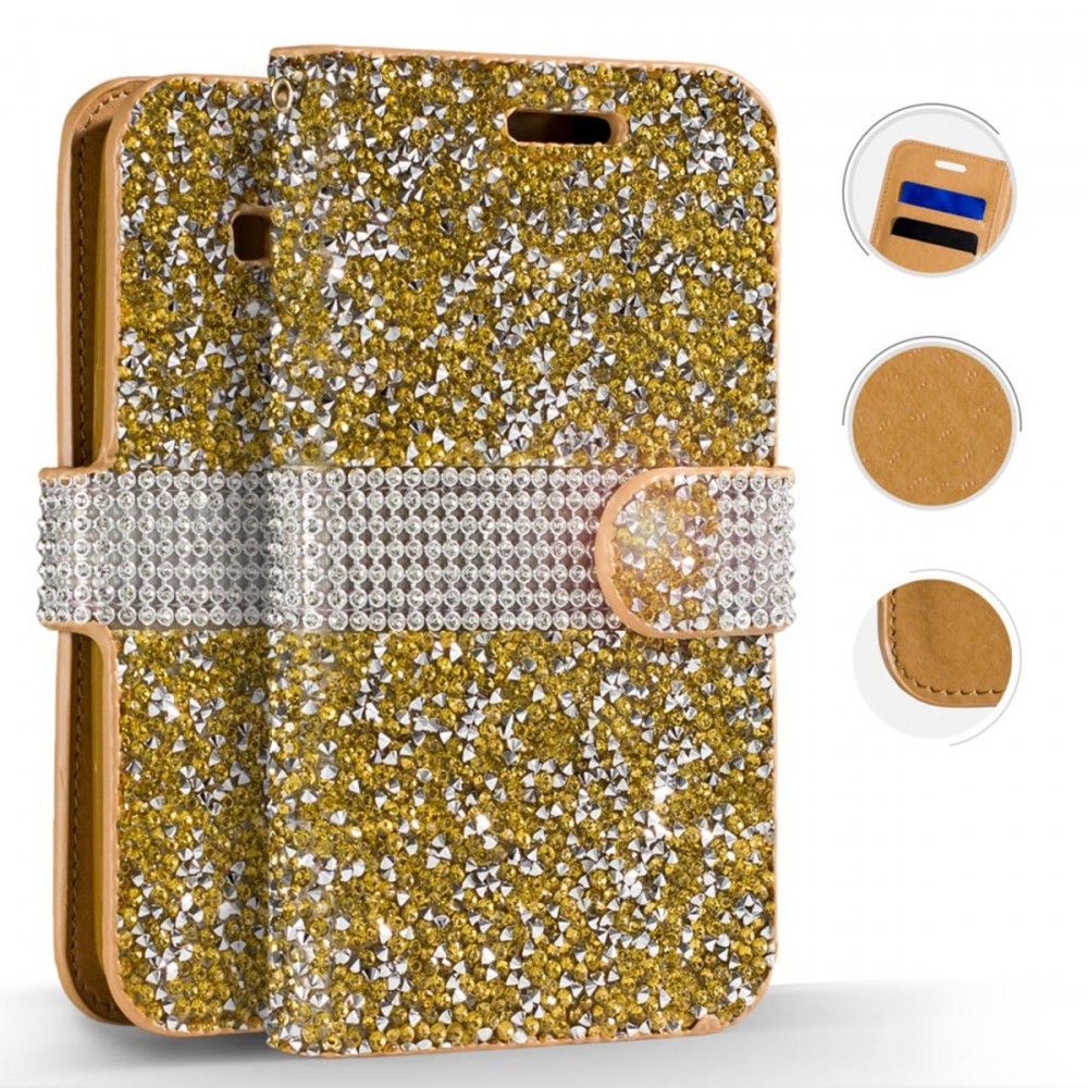 Zizo Full Diamond Samsung Galaxy A6 (2018) oldalra nyíló tok, kártyatartóval, arany