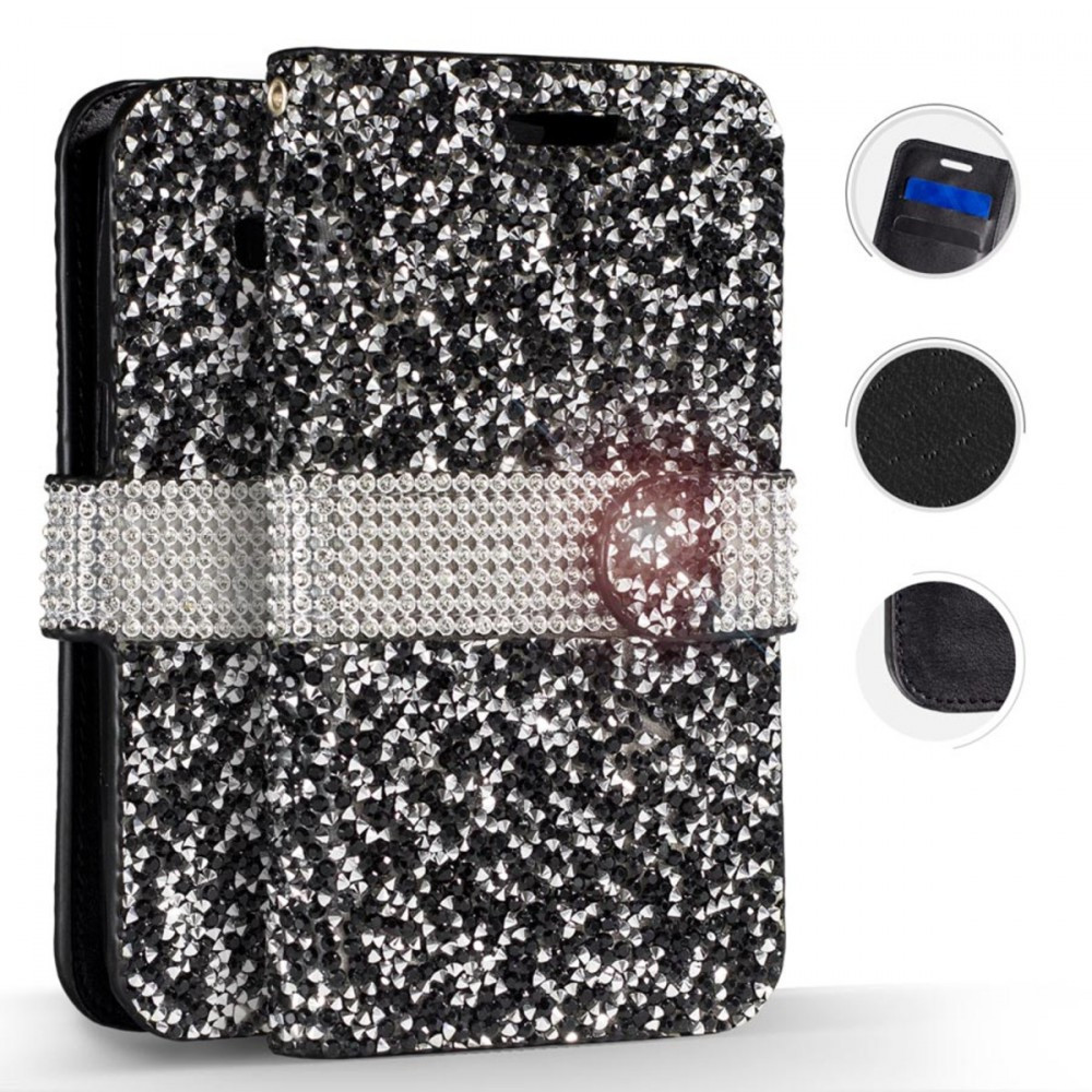 Zizo Full Diamond Samsung Galaxy A6 (2018) oldalra nyíló tok, kártyatartóval, fekete